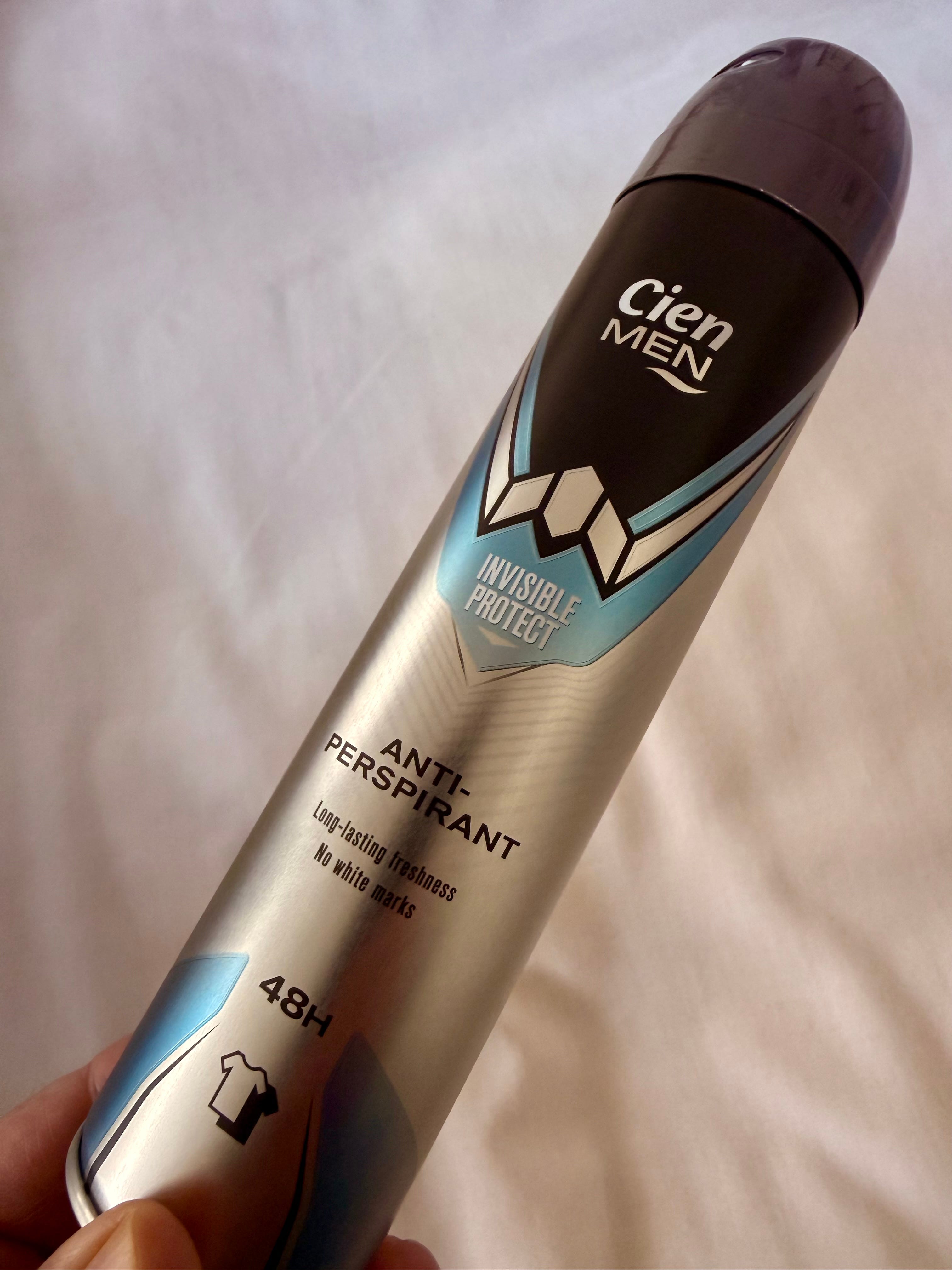 Which is how I came to buy myself a can of Cien. To be precise, it’s a can of Cien Men Invisible Protect Anti-Perspirant, part of the own-brand toiletries range at budget retailer Lidl.